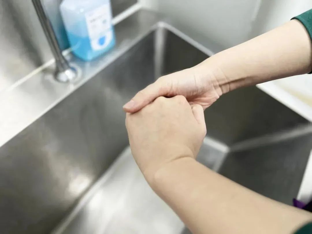 雙手交替清洗手腕。