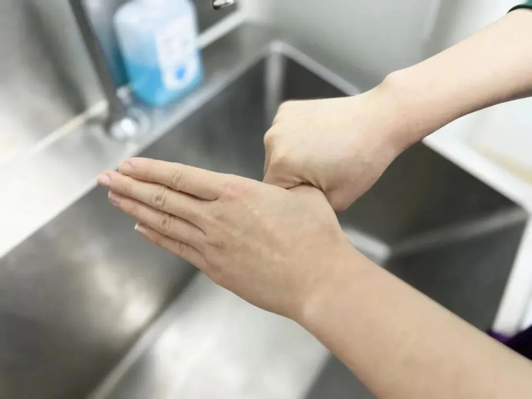 掌心對手背沿指縫相互揉搓,交換進行。